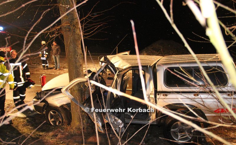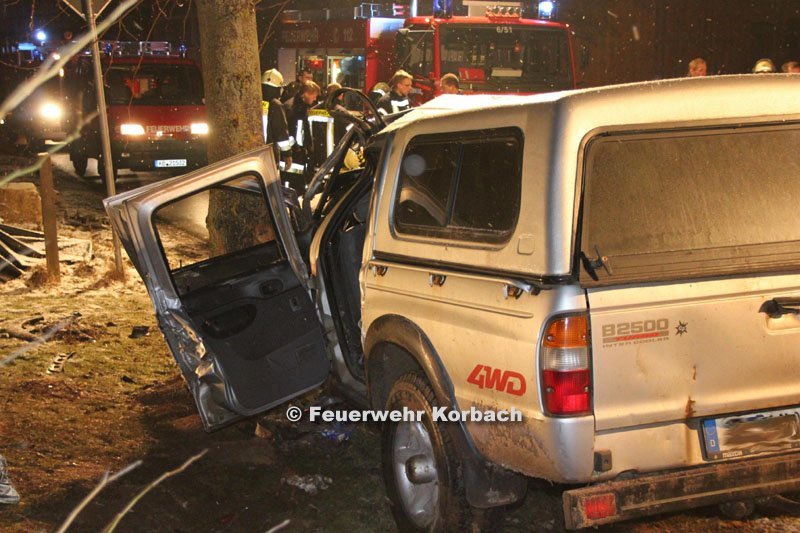 Der 25 jährige Fahrer des Pick-up´s überlebte leider den Unfall nicht. Ein 22 jähriger Beifahrer kam mit schweren Verletzungen ins Krankenhaus.