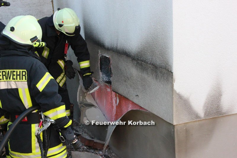 Beim Eintreffen von Feuerwehr und Polizei war das Feuer bereits gelöscht, die Brandschützer kontrollierten die Brandstelle mit der Wärmebildkamera und löschten das Holzbrett nochmals gründlich ab. Nennenswerter Schaden entstand nicht.