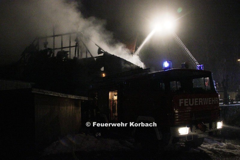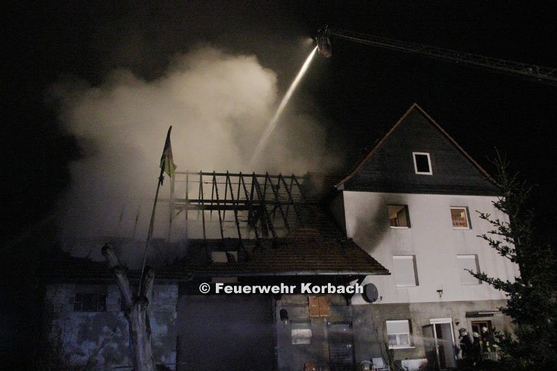 Um genügend Löschwasser zur Verfügung zu haben, nutzten die Einsatzkräfte die Tanklöschfahrzeuge aus der Kernstadt, bauten aber zugleich eine Wasserversorgung vom Hydranten aus auf und bedienten sich aus dem direkt an der Scheunenrückseite vorbei fließenden Bach. Mehr als 50 Einsatzkräfte waren insgesamt vor Ort, einige von ihnen gingen unter Atemschutz vor. Im Einsatz war auch die Korbacher Drehleiter, von deren Korb aus das Dach des Wohnhauses gekühlt wurde. Kreisbrandinspektor Gerhard Biederbick machte sich ein Bild von den Löscharbeiten. Der Notdienst der Energie Waldeck-Frankenberg war ebenfalls an der Brandstelle, der Elektriker brauchte aber nicht einzugreifen.