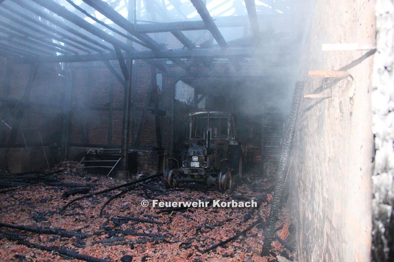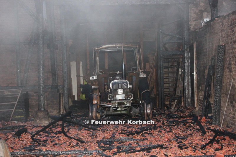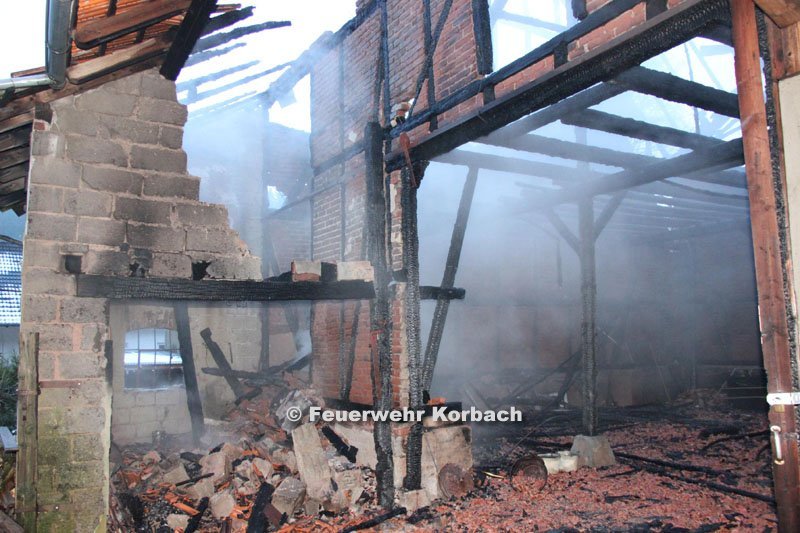 In der Scheune gelagert waren nach Auskunft der bisherigen Eigentümerfamilie unter anderem ein Schlepper, ein Miststreuer, eine Ballenpresse und - Ironie des Schicksals - eine von der Feuerwehr genutzte Verkaufshütte, die bislang beim Mittelalterlichen Markt in Korbach ihre Verwendung fand. Stroh oder Heu waren in der Scheune nicht mehr gelagert. Das Anwesen an der Talstraße war erst kürzlich verkauft worden.