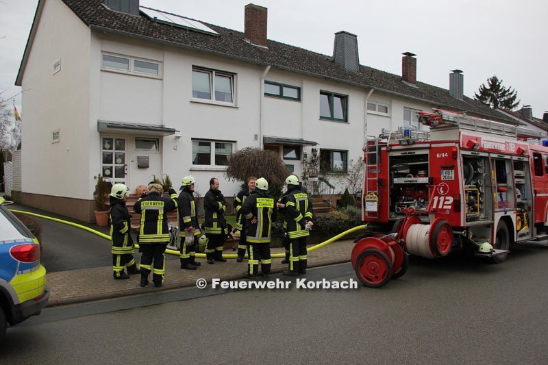 Unter Atemschutz ging ein Trupp durch den Garten und eine dortige Kellertür ins Gebäude vor, löschte den Brand mit einem C-Rohr und kontrollierte die Räume mit der Wärmebildkamera. Ein weiterer Trupp, ebenfalls unter Atemschutz, ging durch die Haustür in den Keller vor. Bereits nach wenigen Augenblicken vermeldeten die Brandschützer dem Einsatzleiter und Stadtbrandinspektor Friedhelm Schmidt die Rücknmeldung "Feuer aus". Laut Schmidt hatten ein Schrank, eine Tür und die Deckenverkleidung in einem Raum gebrannt. Nach den eigentlichen Löscharbeiten belüfteten die Einsatzkräfte das Gebäude mit mehreren Hochdrucklüftern. Dazu brachten die Freiwilligen die Geräte auf Vorder- und Rückseite in Stellung, öffneten Türen und Kellerschächte. Laut Stadtbrandinspektor waren 38 Einsatzkräfte der Kernstadtwehr vor Ort.