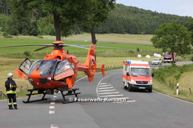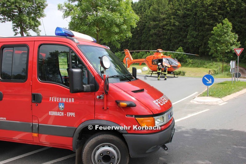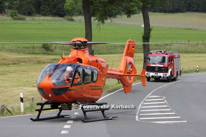 Noch während die Rettungskräfte und die Korbacher Notärztin die Verletzten versorgten, flog auch Hilfe aus der Luft ein: Der angeforderte Rettungshubschrauber Christoph 7 aus Kassel landete einige hundert Meter von der Unfallstelle entfernt auf der abgesperrten Kreuzung an der Walmemühle. Dorfthin brachte eine RTW-Besatzung den Schwerverletzten aus dem Mercedes, der Mann wurde in eine Spezialklinik nach Kassel geflogen. Die Golffahrerin wurde zunächst ins Krankenhaus Korbach eingeliefert, konnte die Klinik aber nach ambulanter Behandlung wieder verlassen. "Die Dame hatte entgegen erster Befürchtungen keine schweren, sondern lediglich leichte Verletzungen erlitten", sagte eine Polizeibeamtin.
