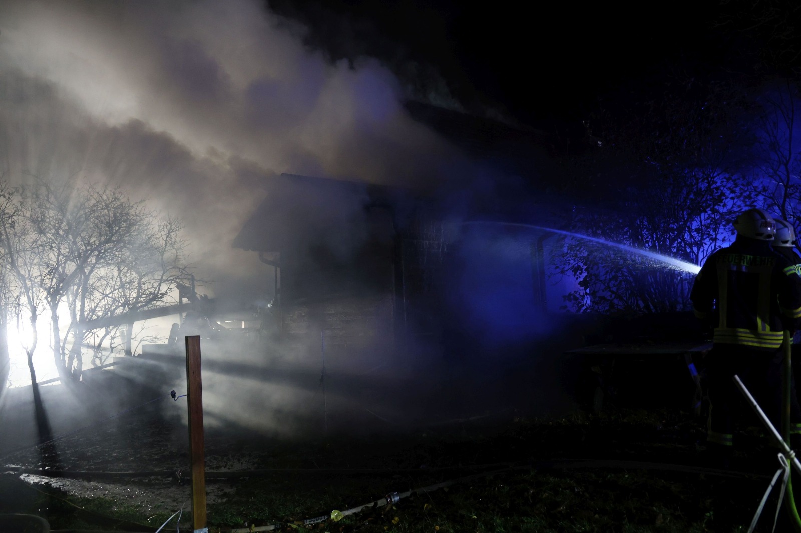 Eine Scheune stand in Vollbrand. Das Feuer war bereits auf benachbarte Gebäudeteile übergegriffen und drohte sich auf das angrenzende Wohnhaus auszubreiten.