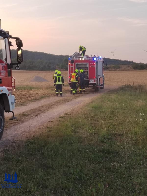 Da das Feld bereits mit einem Grubber bearbeitet wurde und der Strohhaufen lediglich qualmte war eine Gefahr der Ausbreitung glücklicherweise nicht gegeben.