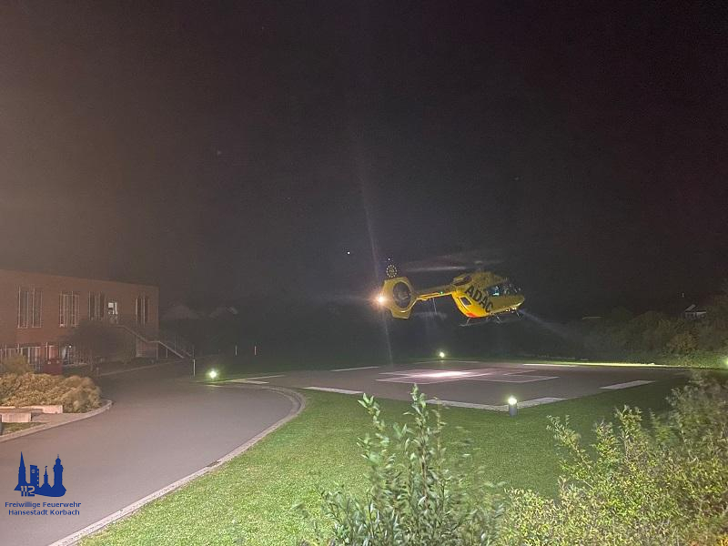 Um die Landung und den Start abzusichern, musste der Landplatz am Krankenhaus ausgeleuchtet werden