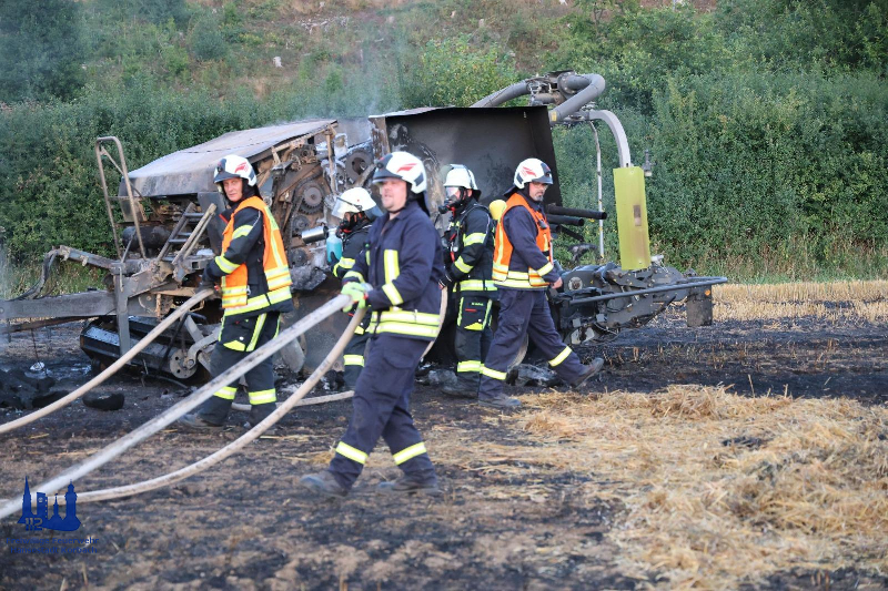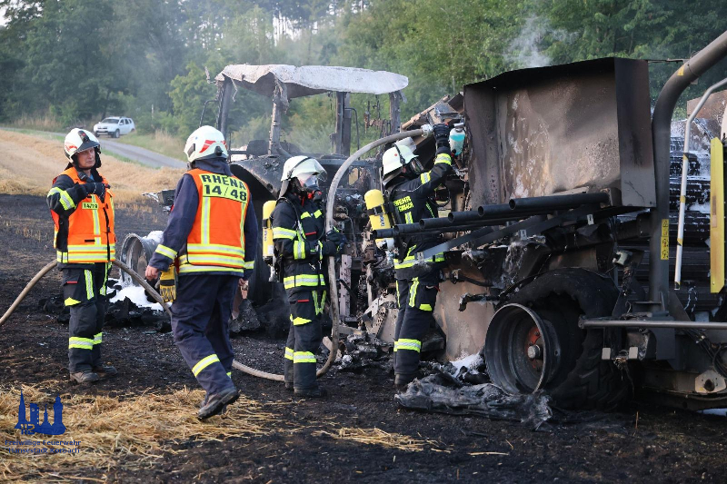 Unterstützt wurde die Einsatzkräfte von örtlichen Landwirte, die u.a. Löschwasser zur Einsatzstelle transportierten.