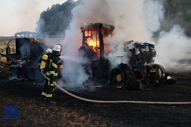 Bei Arbeiten mit einer Ballenpresse geriet diese am Dienstagabend in Brand.