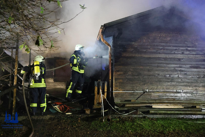 Eine Scheune stand in Vollbrand. Das Feuer war bereits auf benachbarte Gebäudeteile übergegriffen und drohte sich auf das angrenzende Wohnhaus auszubreiten.