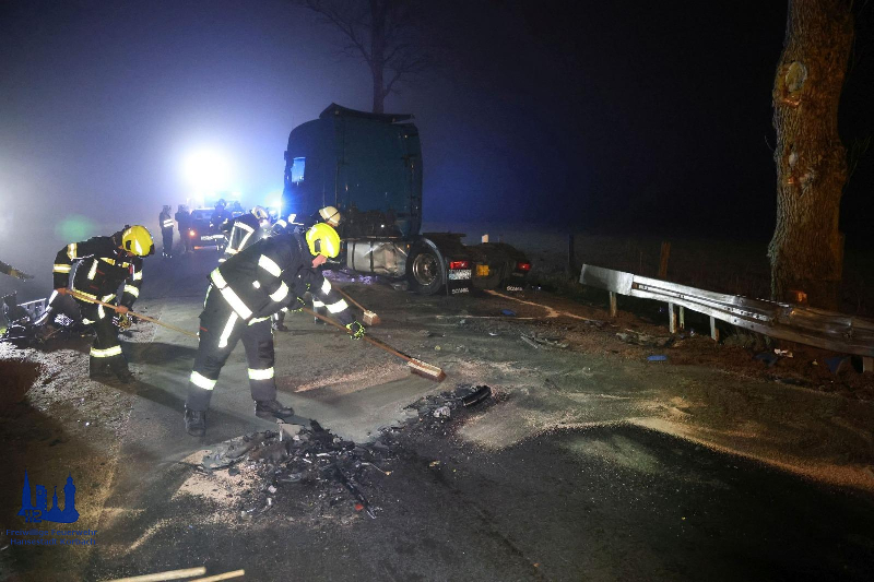 Bei Eintreffen der ersten Einsatzkräfte bestätigte sich die Lage. Eine LKW-Zugmaschine sowie zwei Pkw waren in den Unfall verwickelt. Trotz massiver Beschädigungen war keine Person eingeklemmt. Die Fahrer aller drei Fahrzeuge konnten somit schnell durch den Rettungsdienst betreut werden.