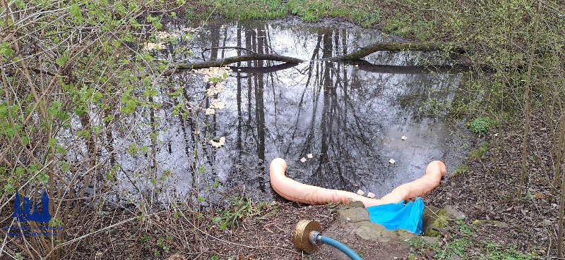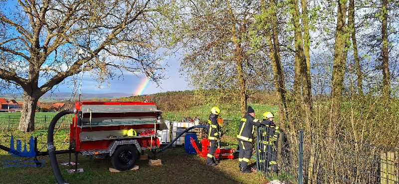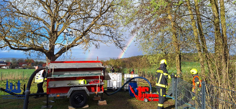 Im weiteren Einsatzverlauf wurde der Gefahrstoffzug der Feuerwehr Korbach angefordert, um eine weitere Ausdehnung zu verhindern, um bereits verunreinigtes Wasser eines benachbarten Teiches abzusaugen und durch den Ölsanimat zu reinigen.