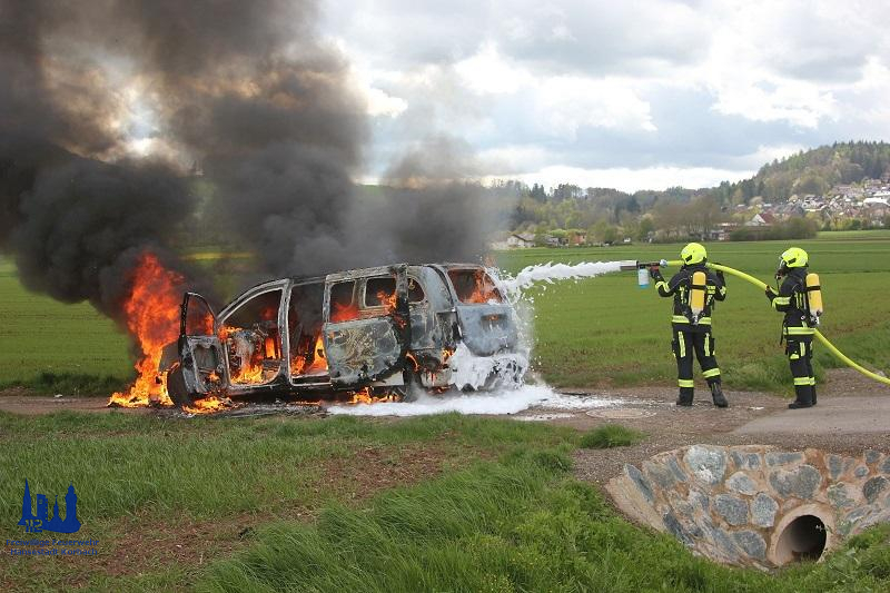 Als wenig später die Feuerwehr Lengefeld und Korbach an der Einsatzstelle eintrafen, stand der PKW bereits im Vollbrand.